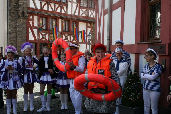 Bereits seit vielen Jahren versucht die Stadtspitze mit ihren Unterstützern an Schwerdonnerstag die klammen Kassen von Rhens aufzufüllen. Als Panzerknacker, Piraten, Robin Hood ist es ihnen aber bis jetzt nicht gelungen, sodass sie 2024 als Gentlemen versuchten, zur Kasse zu bitten und die Haushaltslöcher zu stopfen.